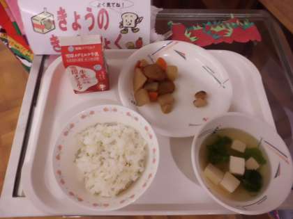 3月2日(月) 今日の給食 公開日 2015/03/05 更新日 2015/03/05 ぱくぱく通信 ☆☆☆ 今日の献立 ☆☆☆ 麦ご飯・牛乳・平天とこんにゃくの煮つけ・トラ豆の甘煮・菜の花すまし 春の野菜「菜の花」をすまし汁に使いました。 緑色がとってもきれいで食がでます。 ほろ苦い味がしますが子ども達は「春」を味わっいました。