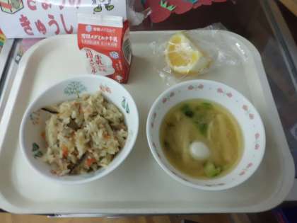 炊き込み五目ご飯・牛乳・みそ汁・はっさく