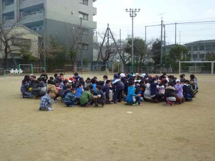 本日シェイクアウト訓練がありました。緊急地震速報が聞こえた際の行動を児童自身が考え,身を守る行動をとれるようにという目的で行われました。運動場にいた子どもたちは,放送を聞き終わってすぐに運動場の真ん中に集まってしゃがんでいました。その訓練の後,教頭先生から「本日3月11日は,東日本大震災が発生した日です。震災で犠牲になられた方,4年を経て,今なお災禍に苦しんでいる方々がおられます。その方々に想いを馳せるとともに震災の教訓を忘れないようにしましょう。」と話され,後,教室で事後指導で振返りをしました。担任の先生から「みんなは,どのように避難しましたか?」の問いに,教室にいた子どもは「近くにある机の下に身をかくしました。」運動場にいた子どもは「運動場の真ん中に行ってかがみました。」などと答えていました。咄嗟の判断で正しく非難することの大切さを学んだのではないかと思います。