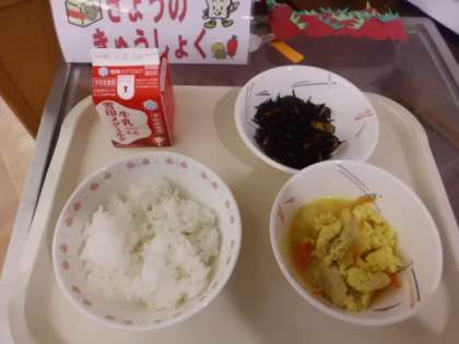4月15日(水) 今日の給食 公開日 2015/04/17 更新日 2015/04/17 ぱくぱく通信 ☆☆☆ 今日の献立 ☆☆☆ ごはん・牛乳・親子煮・ひじきの煮つけ 鶏肉と鶏卵の組み合わせで「親子煮」 牛肉と鶏卵の組み合わせで「他人煮」 今日は「親子煮」です。 彩りもよく食欲が出る献立です。 1年生もパクパクもりもりと食べています。