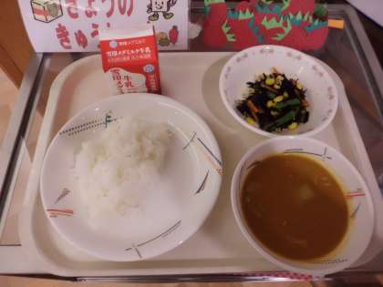 ご飯・牛乳・チキンカレー・ひじきのソテー