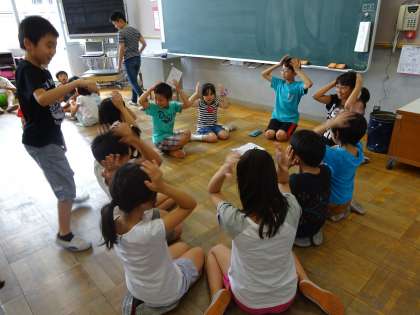 1年生から6年生のメンバーで編成されているグループで月に一度様々な遊びをしています。本校ではそのグループを『にこにこグループ』,月に一度集まる時間を『にこにこタイム』と呼んでいます。