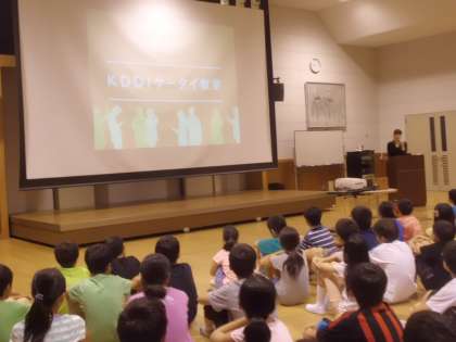 8月26日(水)の2,3時間目にケータイ教室が行われました。今回は4,5,6年生がKDDIの講師の方からケータイを利用する時のルールやマナー,そして身につけておく必要がある力についてお話をしていただきました。