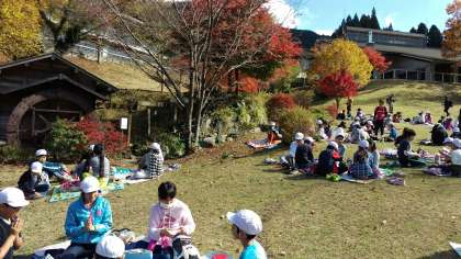 5年生 山の家 お弁当いただきます 公開日 2015/11/06 更新日 2015/11/06 5年生のページ 車小屋の前で紅葉を愛でながら,秋を感じながらの昼食タイムです!朝早くからお弁当を作っていただいたおうちの方に感謝しながら,午後からのプログラムに向けて,美味しいお弁当をいただきました。
