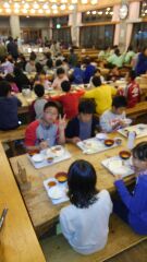 山登りを終え,入浴を済ませた5年生は,おなかがペコペコです。どの子も,夕食をたくさんいただきました。バイキング形式だからといって,好きなものばかりいただいていないか,引率の教職員は目を光らせていますが・・・。さて,どうでしょうか。
