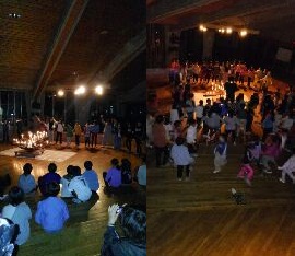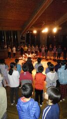 5年生 山の家 キャンドルファイア 公開日 2015/11/08 更新日 2015/11/08 5年生のページ 山の家はまだ雨が降っているため,キャンプファイヤーではなく,室内でキャンドルファイヤーをしました。 前日までみんなで打合せを行い,練習してきた成果を見せあいました。 Are you ready ! Yeah! 大変な盛り上がりで、みんな汗をかいて、ゲームや踊りを楽しみました。