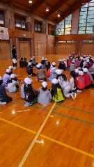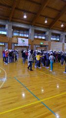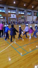 あいにくの雨模様だったので,体育館でサイレントゲームや,キャンドルファイヤーで出来なかったダンスをしています。