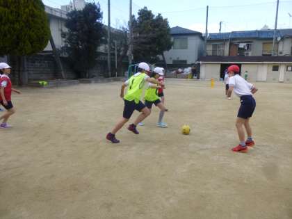 4年生は,体育の学習でサッカーに取り組んでいます。