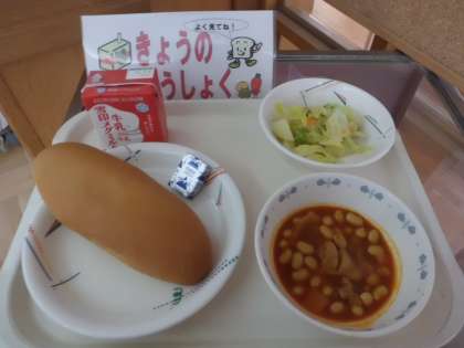 1月26日(火) 今日の給食 公開日 2016/02/06 更新日 2016/02/06 ぱくぱく通信 ☆☆☆ 今日の献立 ☆☆☆ ミルクコッぺパン・牛乳・大豆と鶏肉のトマト煮・野菜のソテー・角チーズ 今日は大豆をトマト味で煮込みました。 鶏肉もやわらかくとても食べやすいです。 家庭での食生活が洋風化になり,大豆をトマト味で煮込むと子ども達に人気があります。