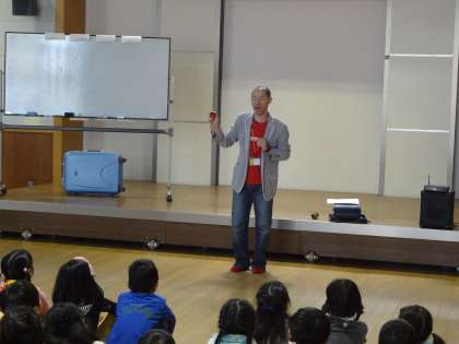 水野さんとかずおくんの絶妙な掛け合いに子ども達はひきつけられ,最後は,大切なことを「うさぎとかめ」のメロディーに合わせて歌いました。