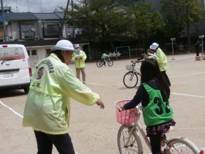 上京警察署の方や,地域交通安全活動推進委員の方のお世話になり,自転車の安全な乗り方について教えていただきました。