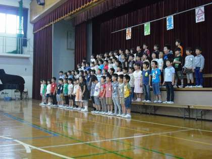 休日参観の後半に表現集会がありました。(写真は,1年,2年,3年の様子です。)