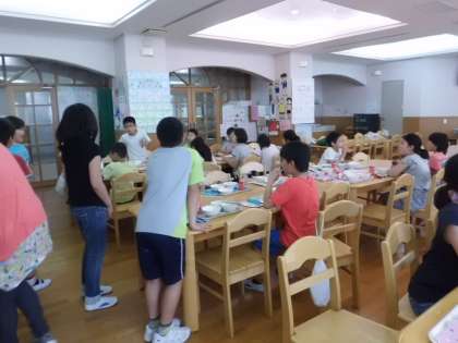 明日は,5年2組がランチルームで給食を食べます。