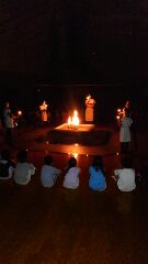 みさきの家 episode19 公開日 2016/06/24 更新日 2016/06/24 4年生のページ いよいよキャンプファイヤーが始まります。 火の神と火の子が,これから始まるファイヤーには欠かせない火を運んできました。 幻想的な中,感謝の気持ちを忘れず,友情を育み協力し合うキャンプファイヤーが始まります。