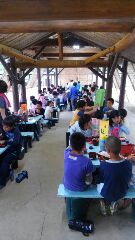 みさきの家 episode35 公開日 2016/06/25 更新日 2016/06/25 4年生のページ 今日は,浦山ラリー・磯観察・プールと,目いっぱい活動した4年生。 お風呂に入り疲れをいやした後は,夕食です。 食事係が作ったグループの立札が置かれているテーブルに集まり,おいしく夕食をいただいています。 今日の更新はここまでとさせていただきます。 今日もたくさんの方に訪問いただき,ありがとうございました。