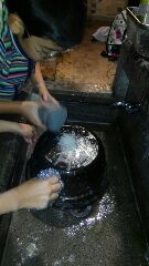 5年生 山の家12 野外炊事後片付け 公開日 2016/11/04 更新日 2016/11/04 5年生のページ おいしくいただいた後は,「来た時よりも美しく」後片付けをがんばります。もうすっかり 暗くなってきました。水も冷たいです。でも,がんばります。山の家の主事先生方が,お湯が沸かせるようにしてくださったり,洗い方のコツをおしえてくださったりしたことに,感謝の気持ちでいっぱいです。