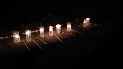 午後から,スコアオリエンテーリングで歩いた所内を,グループに一つのランタンを持って,寄り添いながらハイキングします。夜更けて一層静かな山の夜道を,お互いに言葉をかけあいながら進みます。昼間には,出会えなかった自然,友だちの様子に,たくさん出会えることを願っています。