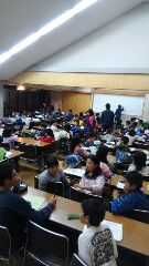 5年生は,研修室に集まって,今日1日のふり返りをしました。