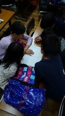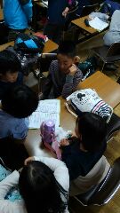 今日の1日,たくさんの活動をして,どんなことを感じましたか?一人一人が,しおりにきちんと書き留めます。そして,仲間と交流します。新町小学校では,どんな学習においても,すべての活動に対して振り返りを大切にしています。