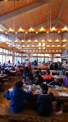 初めて食堂で食べる食事は,子どもたちが楽しみにしていたバイキング形式です。ごはんはもちろん,パンや味噌汁,コンソメスープ,オムレツ,鯖の塩焼き・・・などいろいろなので何にしようか,迷います。