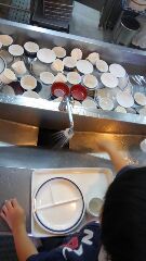 地域の先生たちも,子どもたちが食器や飲み物などをしっかり受け取れるように支援してくれています。また,子どもたちの水筒全部に,お茶を入れてくれています。