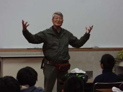 まず,研修室で「きのこの仕事」である「共生」「寄生」「分解」のお話を聞いた後,早速きのこ探しへでました。