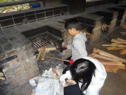 新聞紙につけた火を,はじめは優しく,木に火がついた後は激しく,煙が目にしみて涙が出ても,みんなで必死になってうちわで風を送りました。