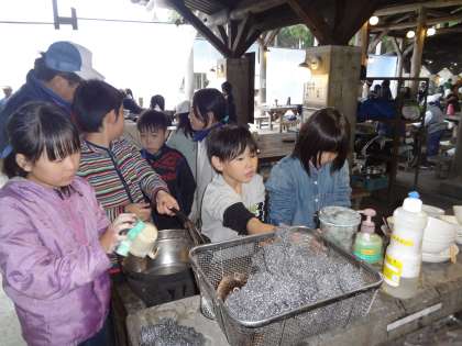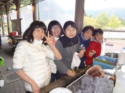 「お鍋のそこは,亀の子タワシできれいに洗ってみよう。」など,1回目の野外炊事で学んだこともできていました。