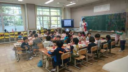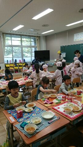 1年生 給食タイム♪ 公開日 2017/04/25 更新日 2017/04/25 1年生のページ 給食がスタートして1週間が過ぎました。 1年生の子どもたちも少しずつ給食の用意や当番の仕事に慣れて,準備にかかる時間も早くなってきました。 今日の給食の献立は,牛乳,バターうすまきパン,もやしのカレーソテー,大豆と鶏肉のトマト煮,チーズでした。 みんな,とてもおいしそうに食べていました。