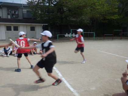 今日は,体育でリレーをしました。チームの中で話し合って,準備や片づけなどの役割を決めました。試しに走ってみましたが,「もっと走りたい!」という声がたくさんで,意欲をもって取り組めました。明日からの活動が楽しみです!