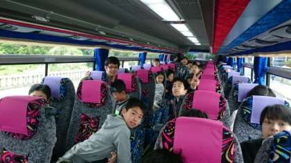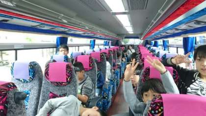 6年生の子どもたちは,バスの中でも元気いっぱいです。