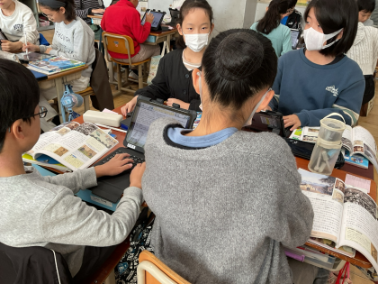 社会は「明治の国づくりを進めた人々」の学習をしています。今日は、鎖国が終わった理由や流れ、その後の外国とのかかわりについて予想したり調べたりしました。