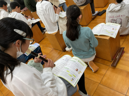 今日はフリー参観日でした。専科の授業も参観していただきました。音楽では、発声練習をしてから歌を歌い、「メヌエット」というリコーダーの練習もしました。