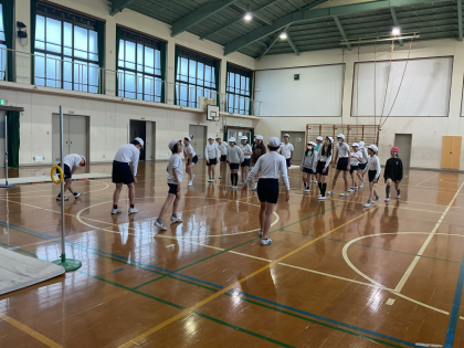 走り高跳びを引き続き学習しています。念入りに準備体操を自分たちで行う姿が素敵でした。