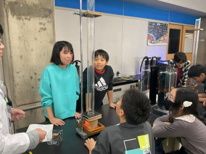 6年生科学センター学習〜3組 地学part4〜 公開日 2025/12/01 更新日 2025/12/01 6年生のページ 雲ができる仕組みには、上昇気流が関係しているということが分かる実験も行いました。 暖かい空気は上に行くということが綿と火を使って理解できました。