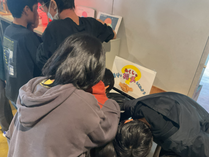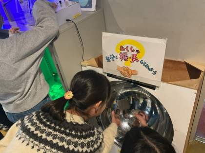 授業の合間には、科学センターにある展示品に興味津々でした。