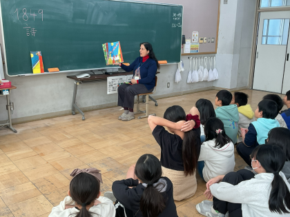 5年生 読み聞かせ 公開日 2025/12/15 更新日 2025/12/15 5年生のページ 図書館司書のマリア先生に読み聞かせをしてもらいました。クリスマスが近い,ということでクリスマスに関係する本でした。どのような内容だったのか子どもたちに感想を聞いてあげてください。