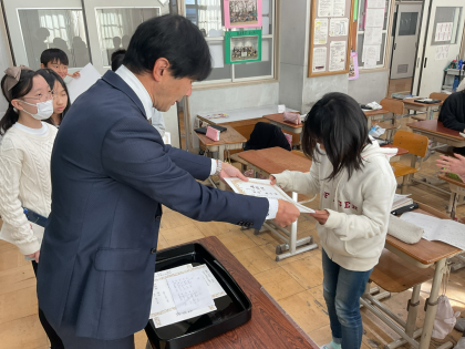5年生 表彰されました 公開日 2025/12/19 更新日 2025/12/19 5年生のページ 1000m走を頑張っていた!!ということで校長先生から表彰状をもらいましいた。良いタイムを出そうと競い合いながら取り組んだ結果です。 6年生になってもその努力を続けてほしいと思います。