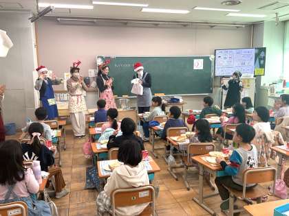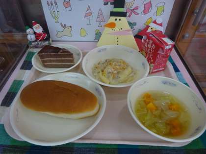 デザートのチョコレートケーキは、朝から楽しみにしていた子もたくさんいました。教室にケーキが届けられると、子どもたちの笑顔があふれていました。楽しい給食時間になったようでした。