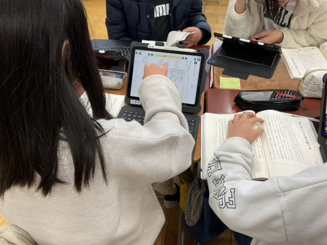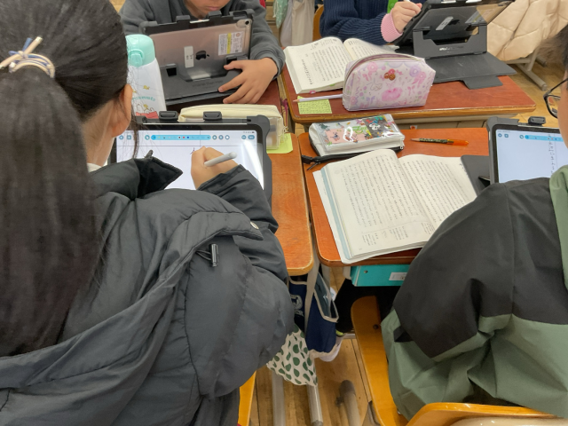 国語では『「考える」とは』の学習をしています。筆者の伝えたいことや、筆者が「考える」ことをどのようにとらえているかについて話し合いました。