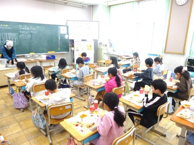 今日の給食は、麦ごはん・牛乳・チキンライス(具)・ローストポテト・スープでした。ローストポテトは、今月の新献立でした。じゃがいもにオリーブオイルと塩こしょうをまぶしてから、スチームコンベクションオーブンで20分程焼いています。中はホクホク、外はカリッとした食感でした。じゃがいもの甘みも感じられるように、塩味は控えめにしています。「じゃがいもがとっても美味しい!」「毎週食べたいです!」と大好評でした。