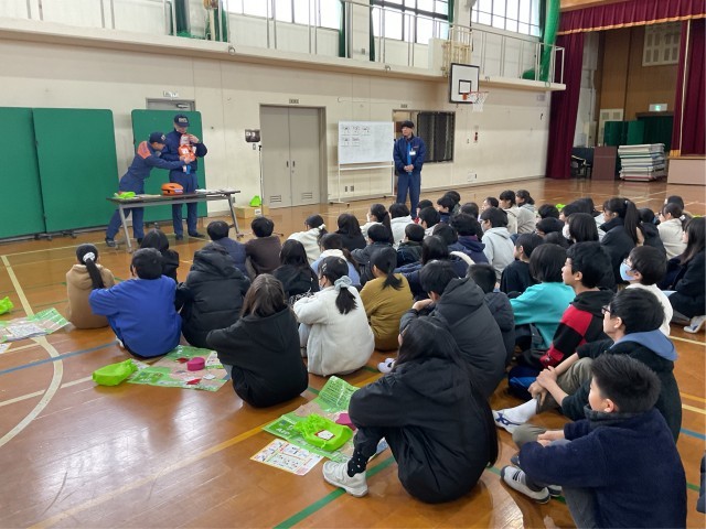 6年 避難訓練 救急救命訓練 公開日 2026/02/06 更新日 2026/02/06 6年生のページ 今日は地震の後の火災が起こることを想定した避難訓練を行いました。安全に避難した後、上京消防署の署員の方から救急救命の方法を学びました。訓練キットを使いながら胸骨圧迫をしてみたりAEDの使用を学んだりしました。みんな真剣な姿で訓練に取り組むことができました。