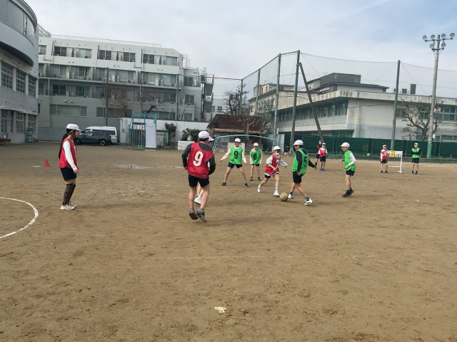 6年生 体育科~サッカー~ 公開日 2026/02/10 更新日 2026/02/10 6年生のページ サッカーの学習が進んでいます。チームで声を掛け合いながら、立てた作戦を実践しようと協力していました。