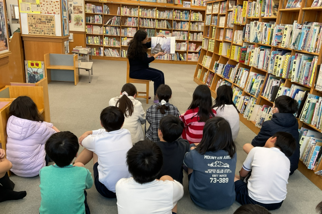 国語科では、物語文「海の命」の学習に入りました。学習の導入として、学校司書の先生に読み聞かせをしていただき、作品の世界にじっくりと浸る時間となりました。また、物語をより深く味わうために、関連する本を読んで学びを広げる「並行読書」についても教えていただきました。