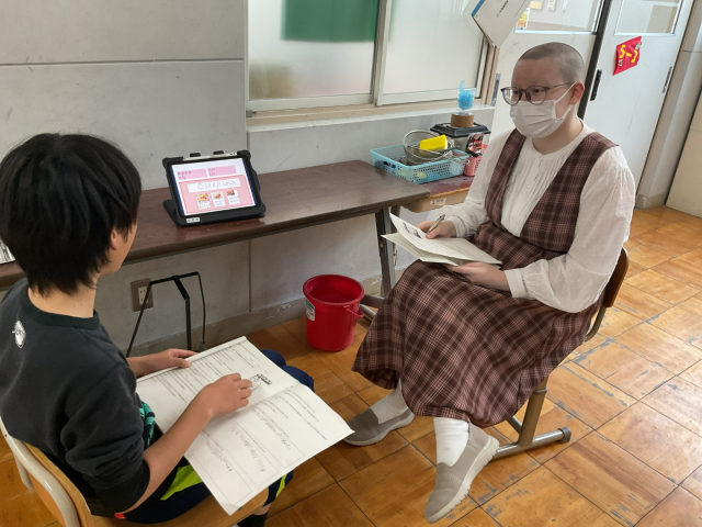 5年生 外国語科~パフォーマンステスト~ 公開日 2026/02/27 更新日 2026/02/27 5年生のページ これまで学んできたことを活かして、ALTとコミュニケーションを取りました。うまく話せるか少し緊張している様子もありましたが、みんな一生懸命に取り組んでいました。