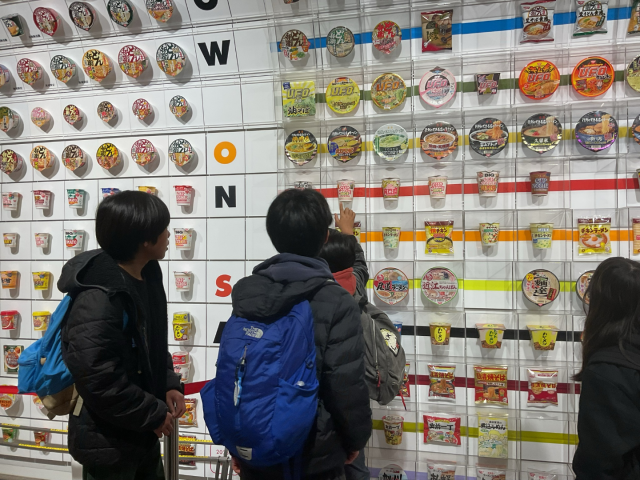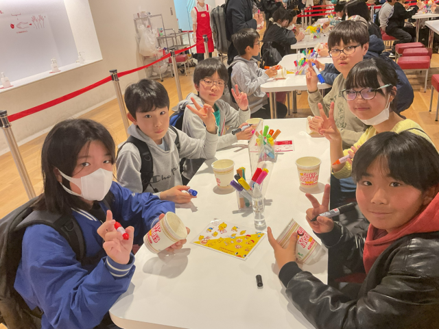 カップヌードルミュージアムの様子です。カップヌードル作りの体験、とても楽しそうにしていました。