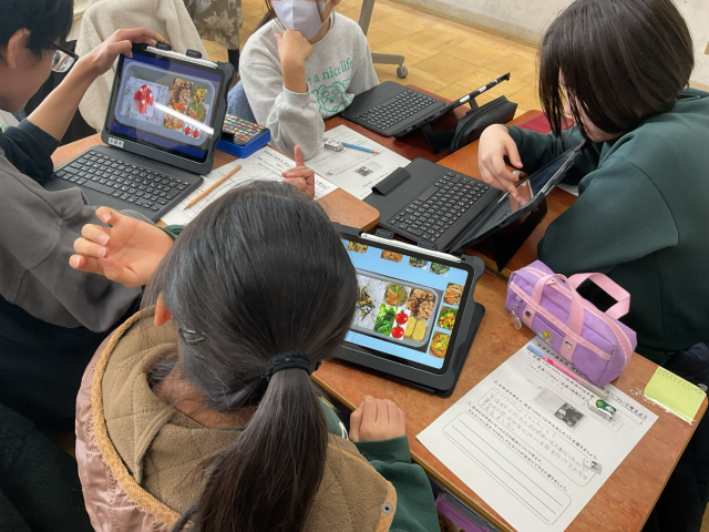 栄養教諭の先生の食育の授業がありました。今回は、「中学校の食生活」について考えました。栄養バランスが整ったお弁当にするためにいろいろな工夫を考えていました。