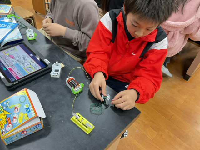 電磁石の性質を調べる実験を行い、流を流すと釘がくっつくことを学びました。