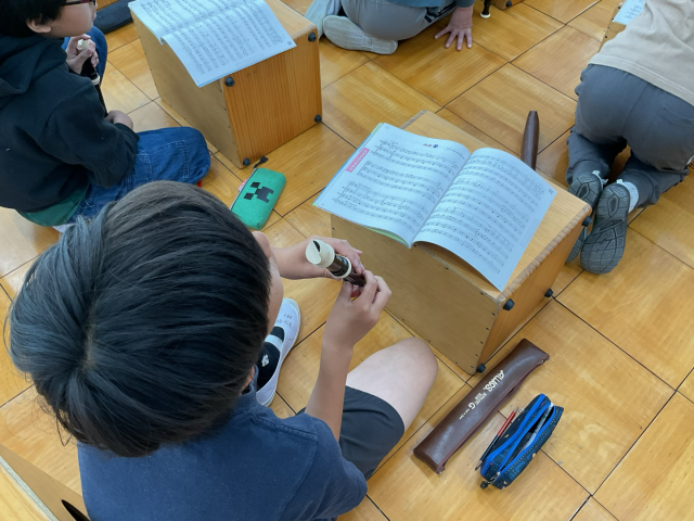 今日はリコーダーを頑張りました。「木星」という曲の演奏に取り組んでいます。