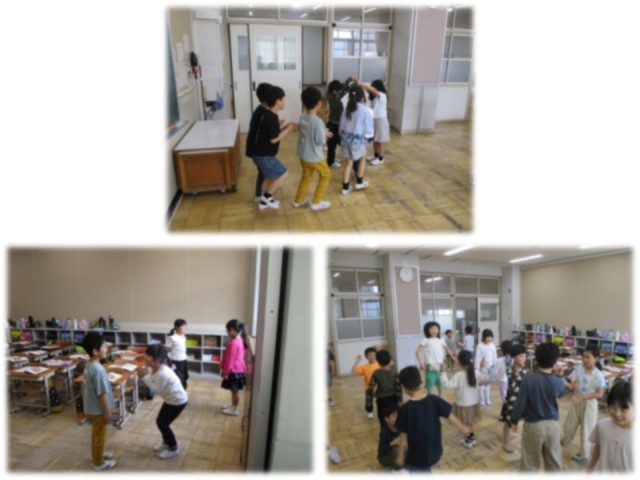 リズムにのって動いたり拍打ちをしたりしながら楽しんでいます。